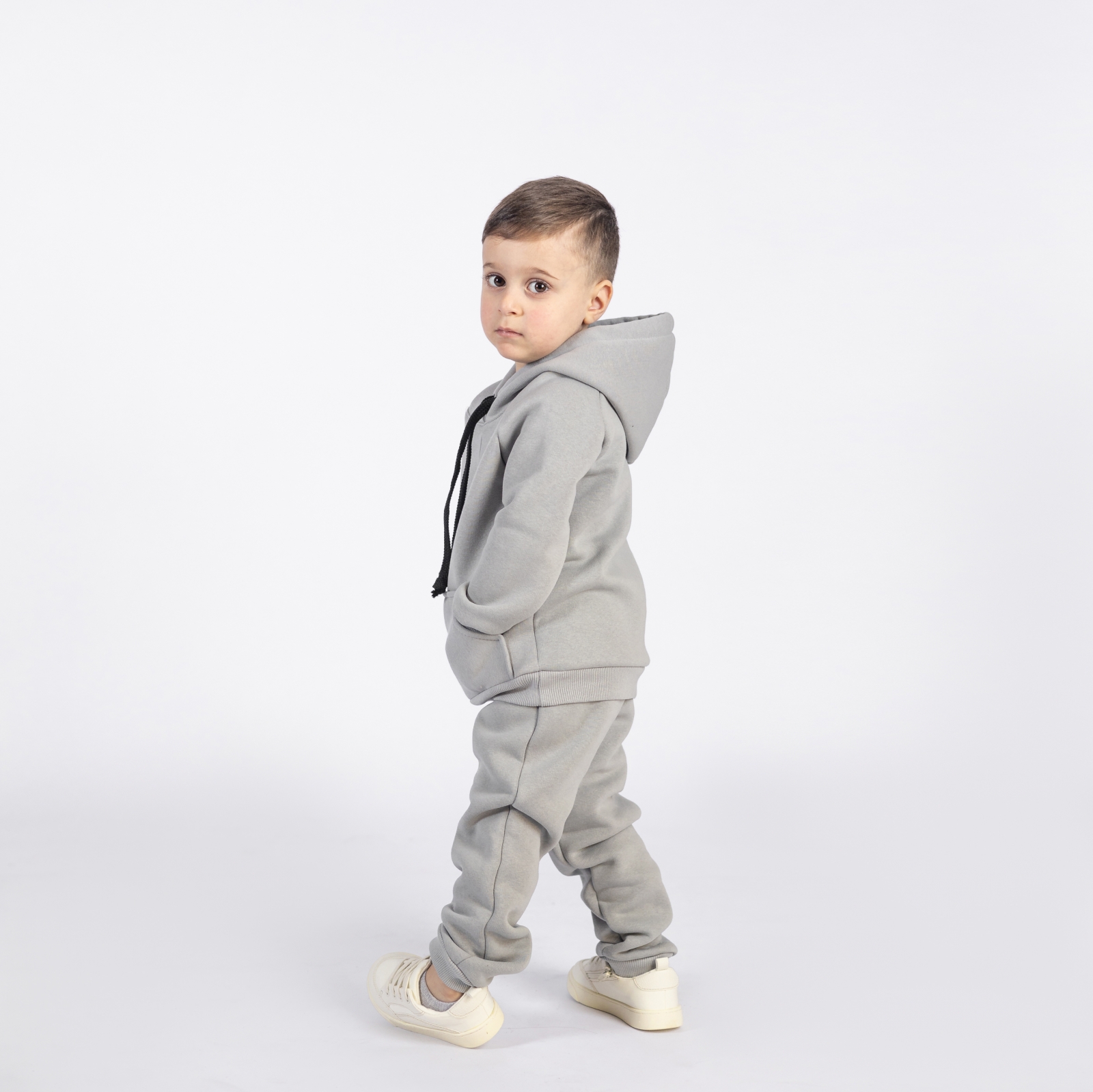 Купить оптом 296-С. Свитшот с капюшоном + Штаны, хлопок 65%, 35% ПЭ, 3-х нитка (начес) серый 98,104,110,116 в Симферополе