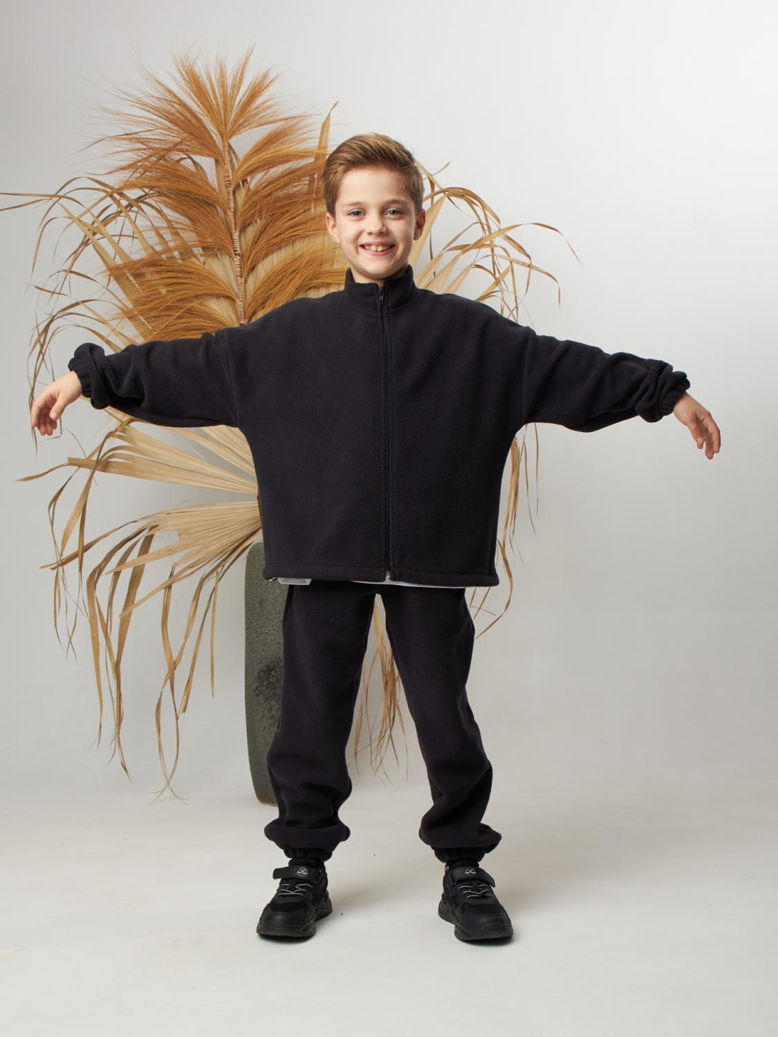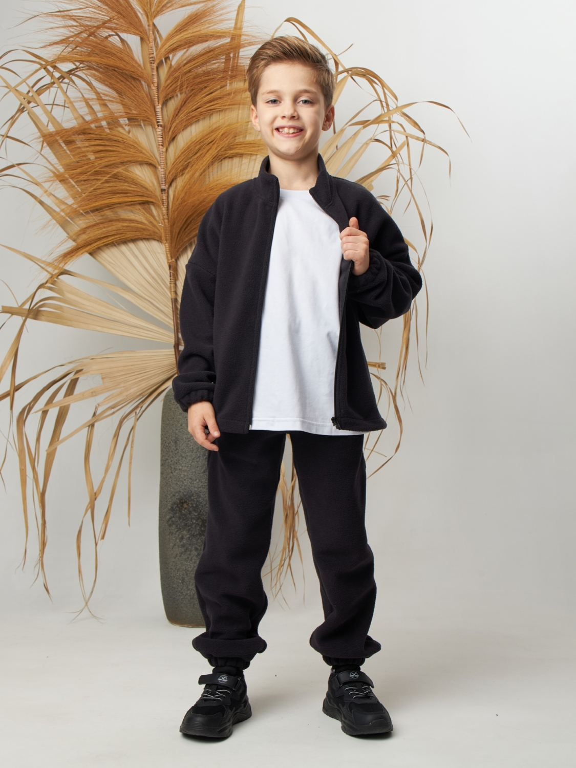 331. Костюм детский (Брюки+Толстовка), темно серый, 100% полиэстер, р. 122,128,134,140