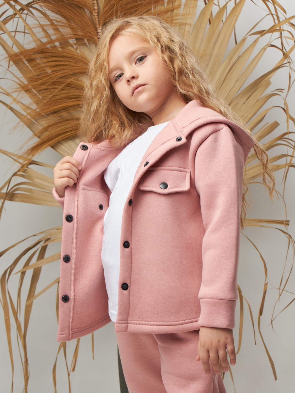 333. Костюм детский (Брюки+Толстовка) на кнопках, пудра, хлопок 65%, 35% ПЭ, 3-х нитка с начесом 122,128,134,140