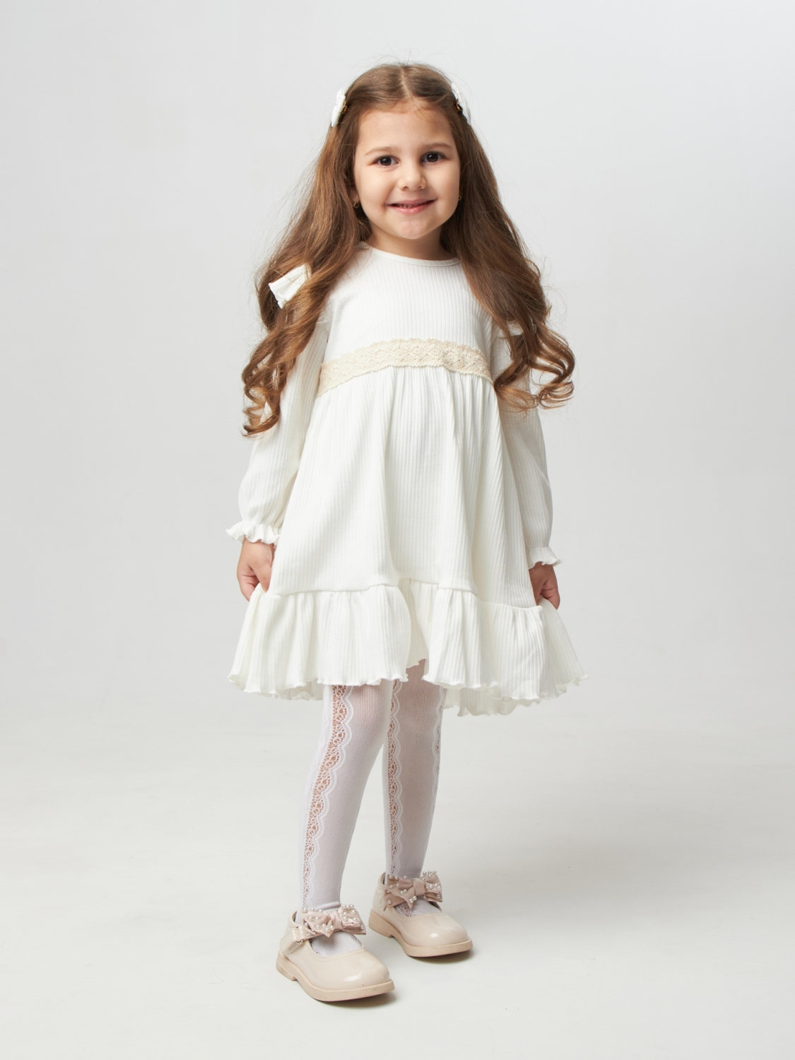 Купить оптом 332. Платье детское из лапши, хлопок 100%, молочное, р. 98,104,110,116 в Симферополе